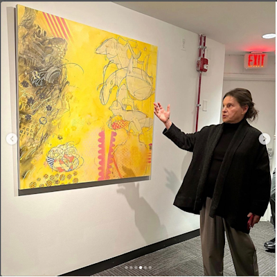 Pamela Keravuori is a visual artist living and working in Fairfax Station, VA. In her biomorphic abstract paintings, shapes sitting on the edge of recognition embrace and budge into each other, with minimal attention to logic and convention — a bodily shape wraps like a muscle, a gnarled form morphs into a torso. She explores the abstraction of desire as compulsion embedded in a world of tension, drama and conflict through her imagined and high-keyed compositions. While her paintings are visceral, physically carving out a performative space with weighted edges, their resonance is psychological and their read is slow, teasing and complex.